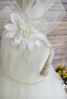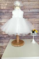 Rochita realizata din tafta alba, tulle fin alb si dantela fina. Are aplicatii de perlute. Captuseala este BBC 100%.