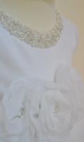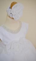 Rochita realizata din tafta alba, voal fin, tulle si accesorii din perle și cristale. Cordon din voal decorat cu flori si perlute. Captuseala este BBC 100%.