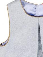 Rochie jacquard flori in relief, avand contur auriu la umeri si guler.Marimi potrivite pentru 2 varste consecutive.