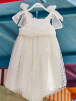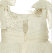 Voaluri 100% poliester, dublata cu bumbac 100%, dantela chantilly, eleganta atat prin tesatura cat si prin suprapunere si prin model. Va merita fotografia care va fi mai tarziu o marturie a unei printese mici. Pentru situatiile in care rochia mamei costa pana la de 10 ori mai mult, nici aceasta nu e o rochie scumpa. Aprecierea trebuie facuta in functie de reperul ales.